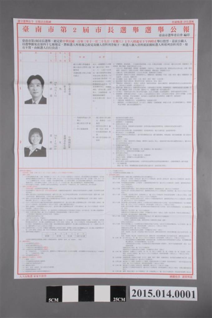 臺南市選舉委員會編印臺南市第2屆市長選舉公報