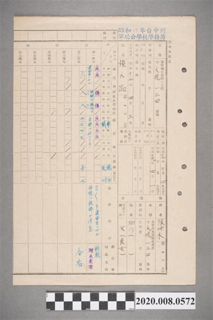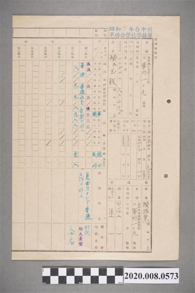 昭和十九年台中州軍功公學校學籍簿 賴玉釵