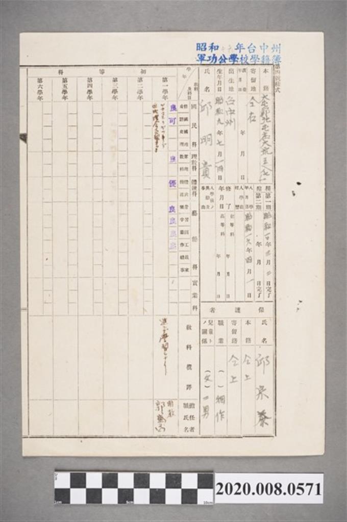 昭和十六年台中州軍功公學校學籍簿 邱明貴