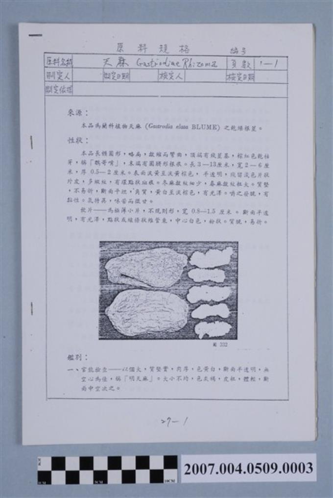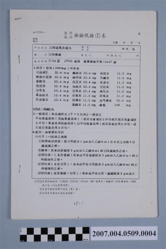 三和追風去濕丸原料成品檢驗規格表