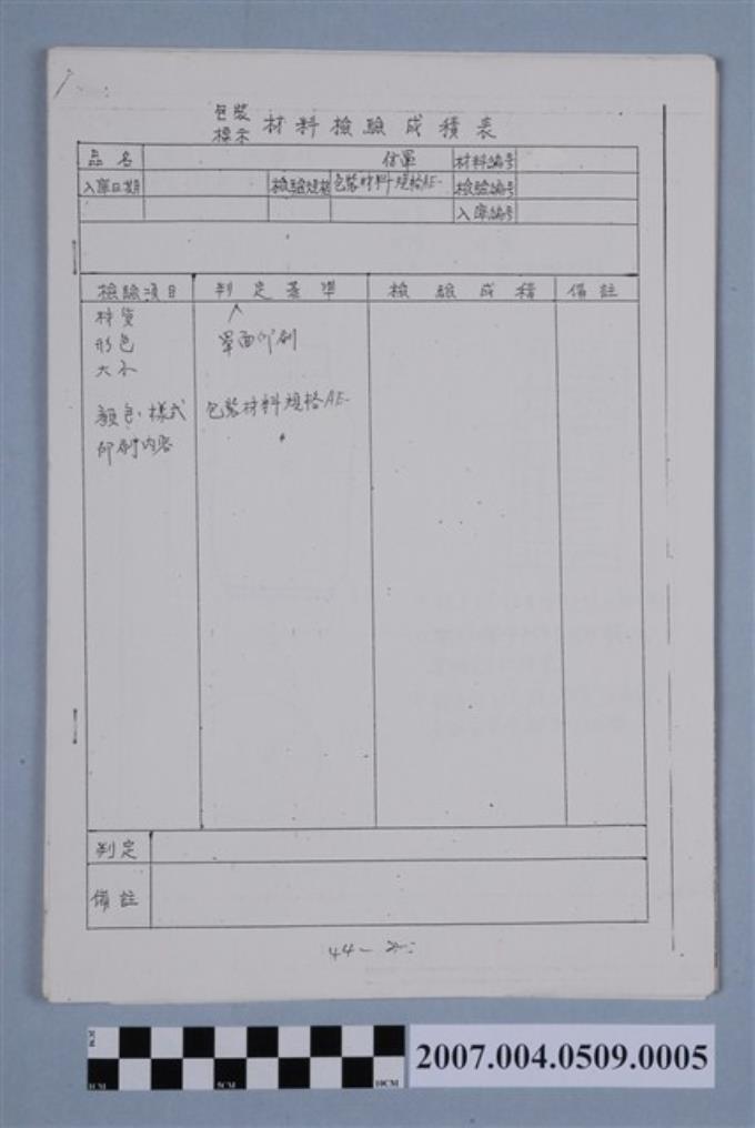 包裝標示材料檢驗成積表