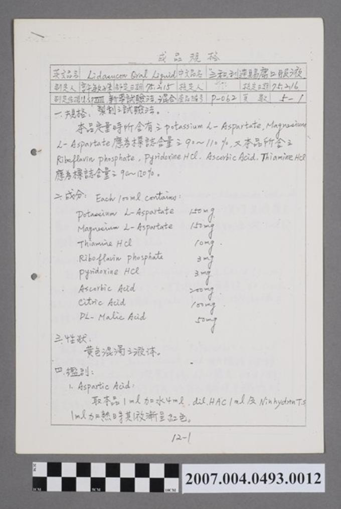 保命維他液成品規格