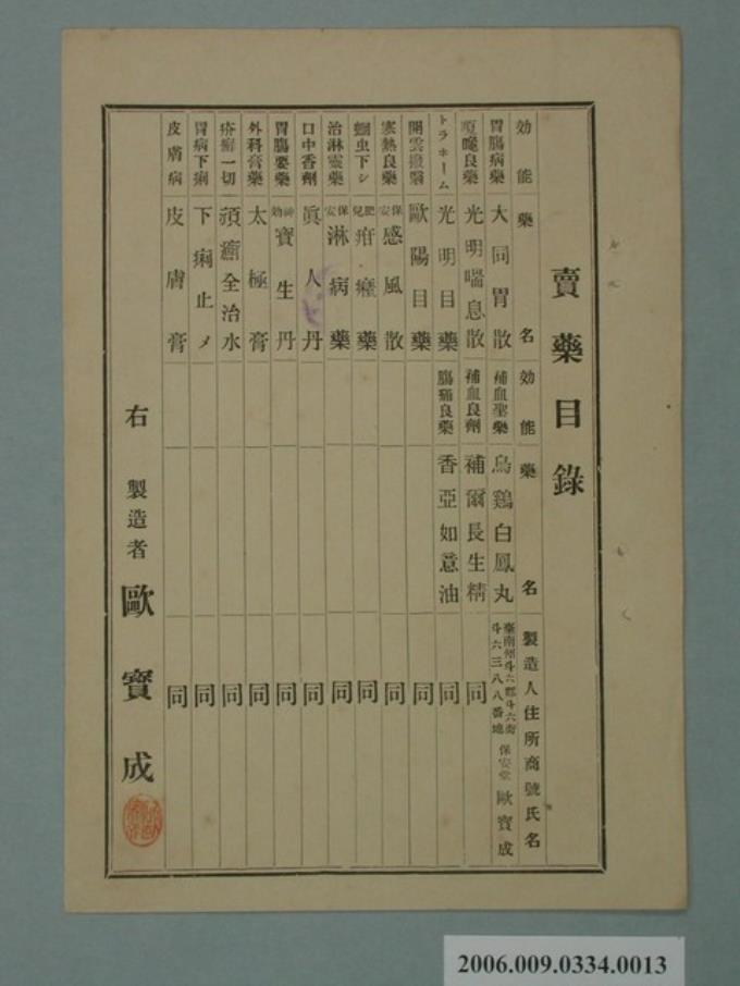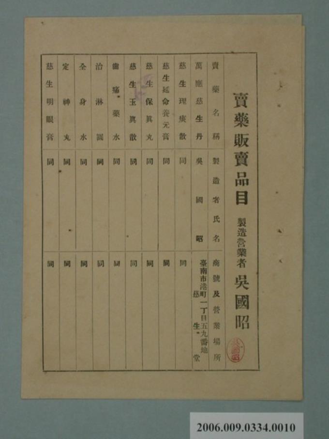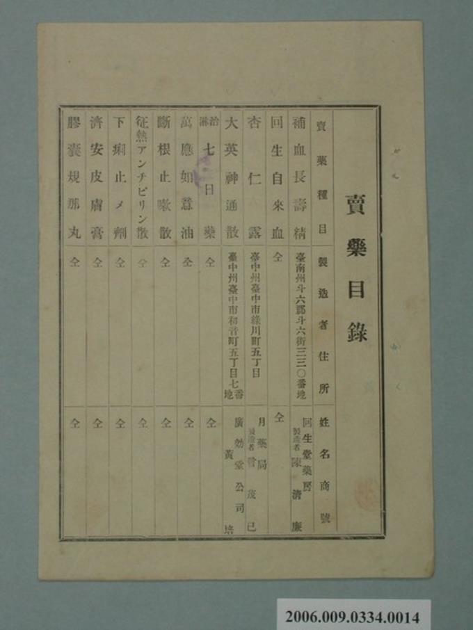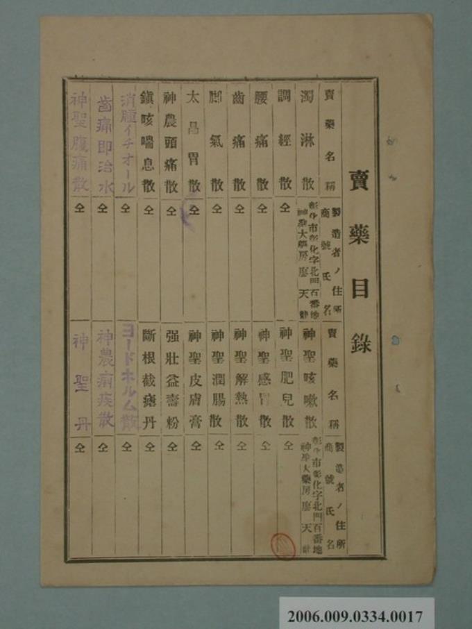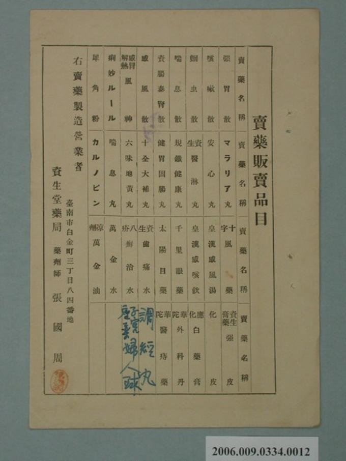 資生堂藥局藥劑師張國周賣藥販賣品目