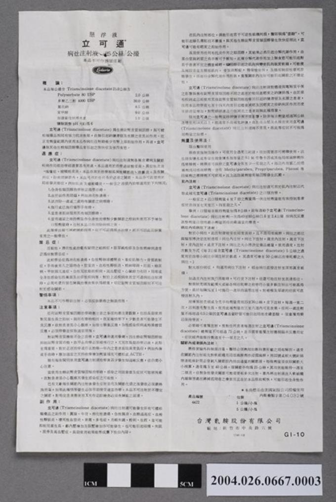 臺灣氰胺股份有限公司出品立可通病灶注射液說明書