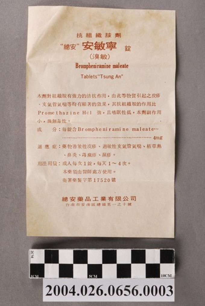 總安藥品工業有限公司出品安敏寧錠包裝紙盒