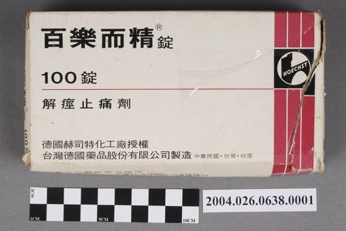 台灣德國藥品股份有限公司製造解痙止痛劑百樂而精錠包裝紙盒