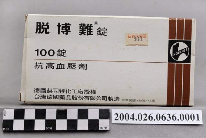 臺灣德國藥品股份有限公司製造抗高血壓劑脫博難錠包裝紙盒