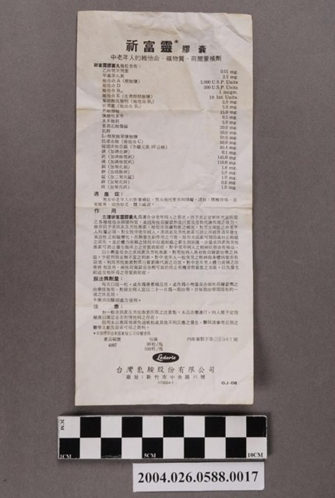 臺灣氰胺股份有限公司製祈富靈膠囊