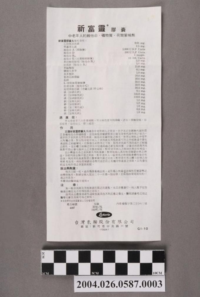 臺灣氰胺股份有限公司製祈富靈膠囊