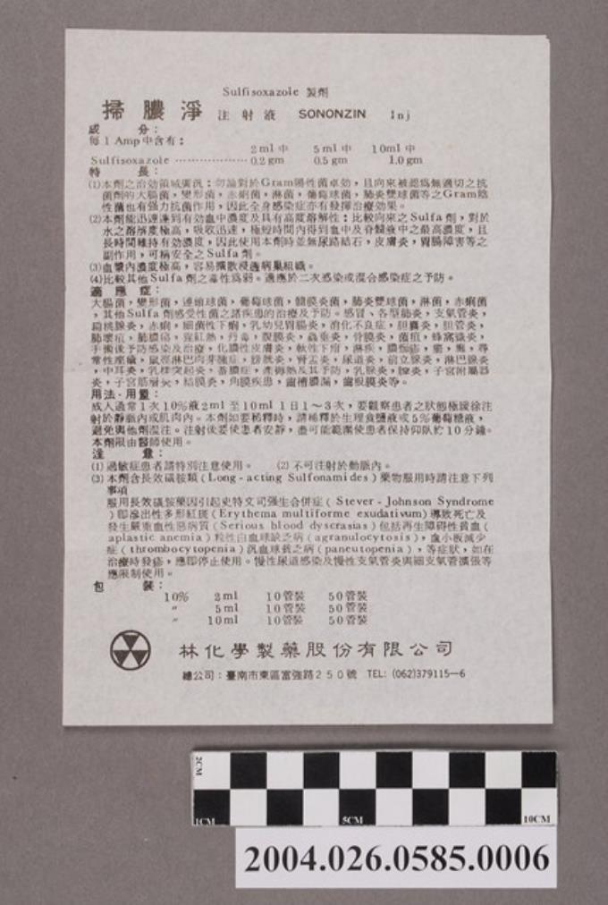 林化學製藥股份有限公司出品掃膿淨注射液說明書