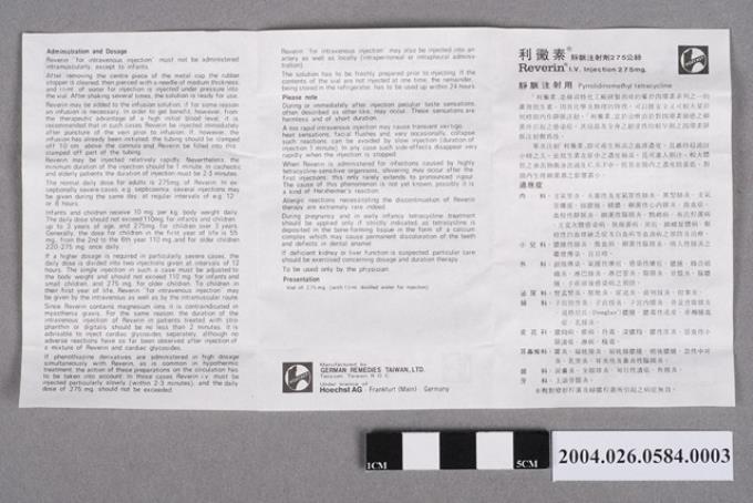 臺灣德國藥品股份有限公司製造利黴素靜脈注射劑說明書