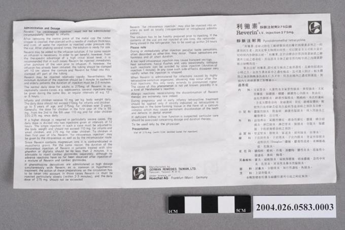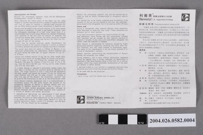 臺灣德國藥品股份有限公司製造利黴素靜脈注射劑說明書