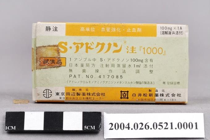 白井松新藥株式會社製造「S.アドクノン」注射液包裝紙盒