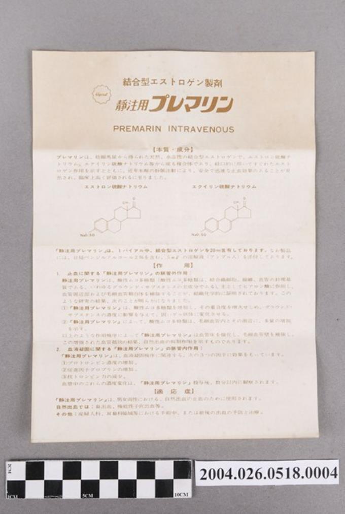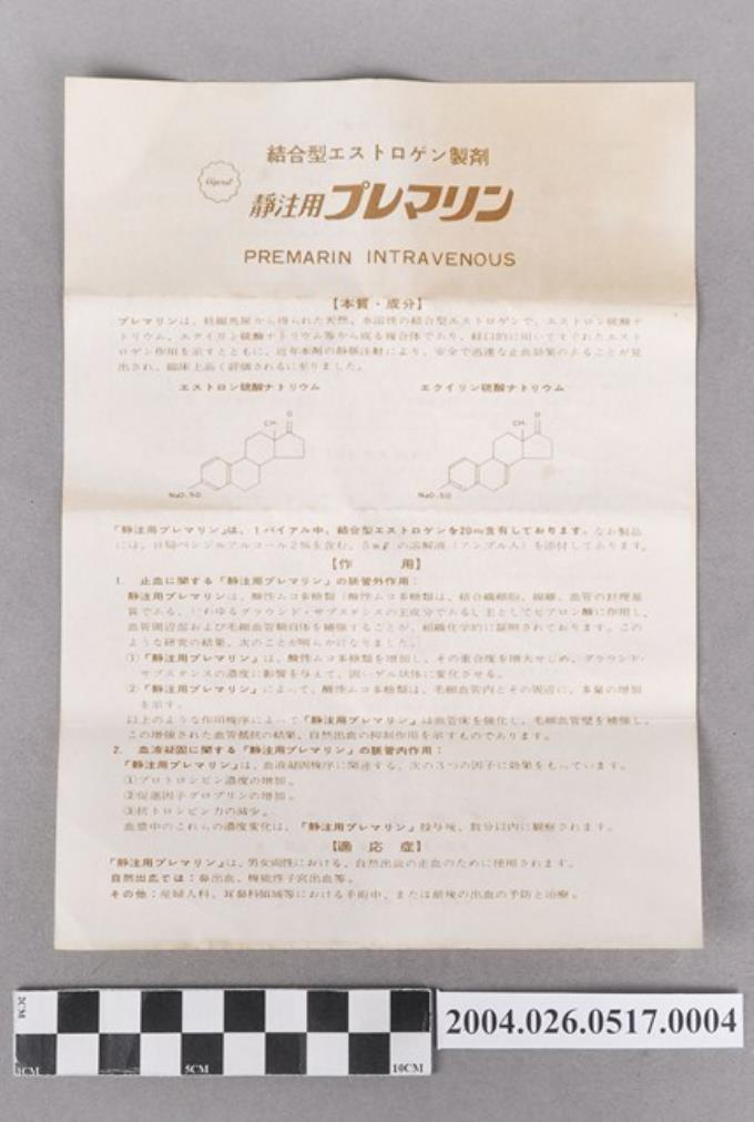 東洋釀造株式會社製造靜注用「プレマリン」說明書