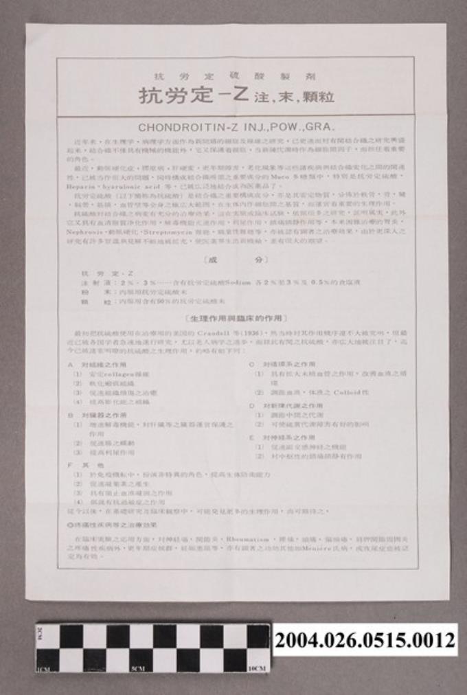 扎里亞株式會社製「コンドロイチンz」注射液說明書