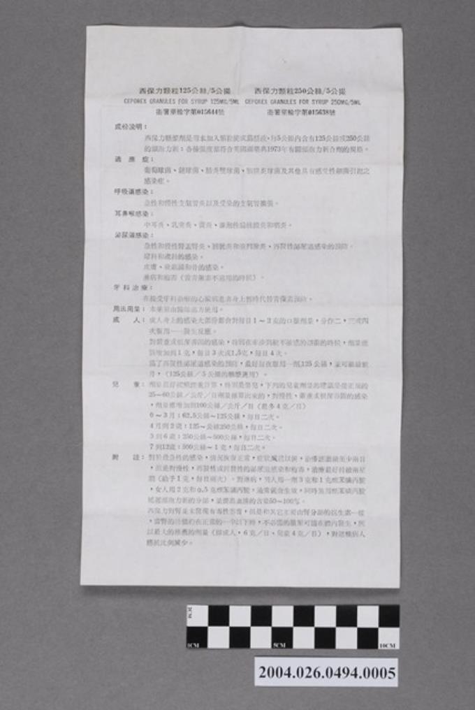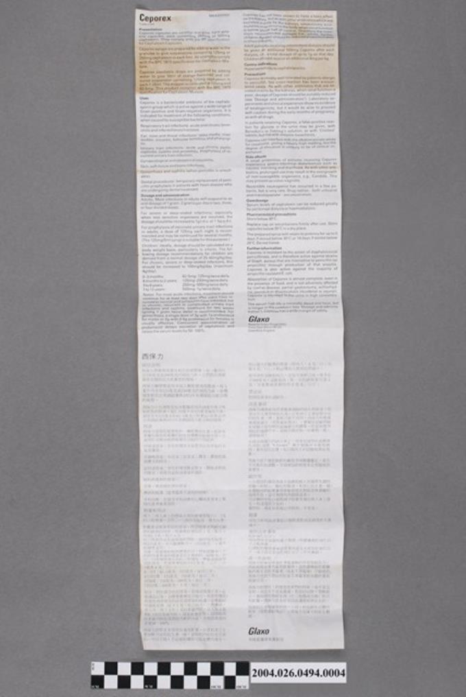 英國葛蘭素製「Ceporex」糖漿劑中文說明書