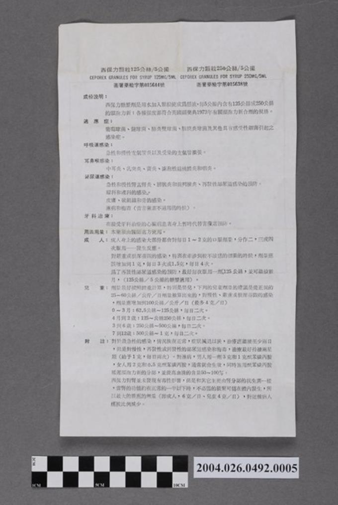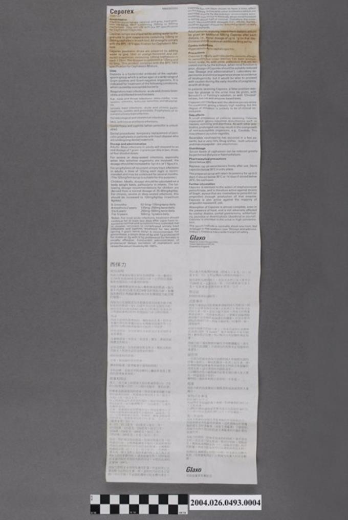 英國葛蘭素製「Ceporex」糖漿劑中文說明書
