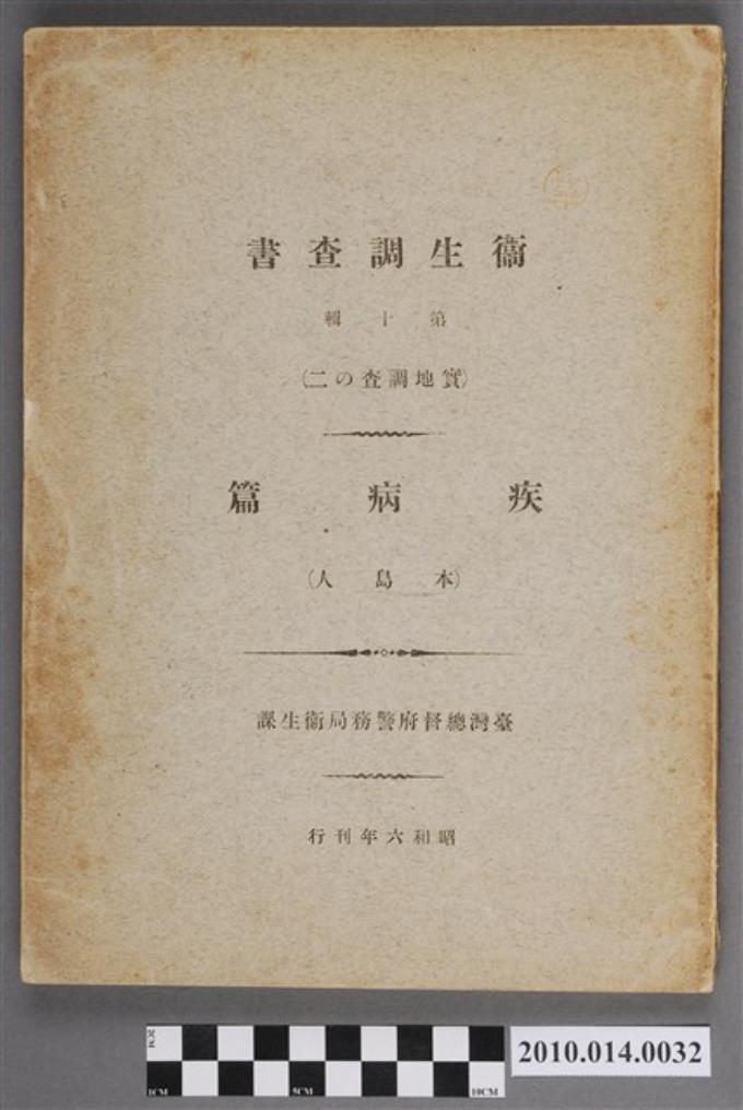 臺灣總督府警務局衛生課發行《衛生調査書》第十輯
