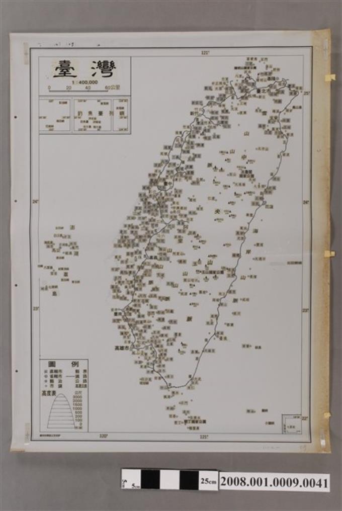 〈四十萬分一臺灣地區〉手繪製版膠片文字黑版