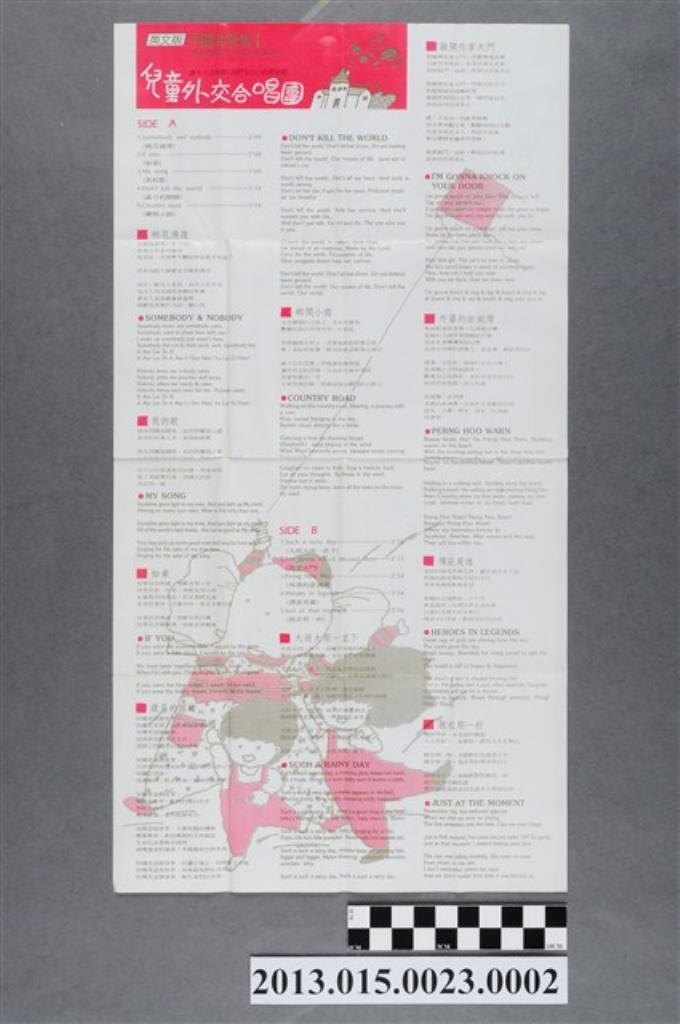 飛碟企業發行編號「UC-8868」兒童外交合唱團英語歌曲專輯《中國名歌集1(英文版)》歌詞單