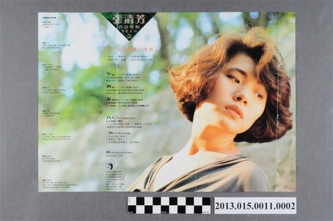 點將唱片公司發行編號「DJ-9041」張清芳臺語歌曲專輯《台語專輯老歌系列(三):八O年代美麗的哀愁》歌詞單
