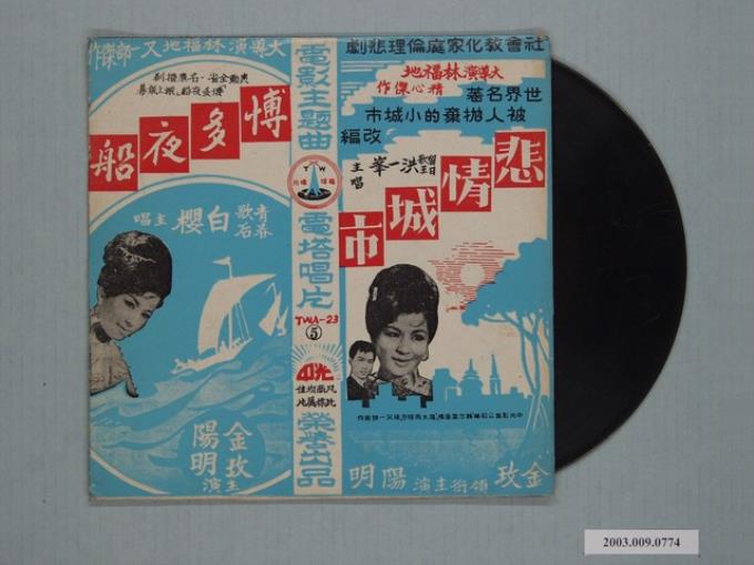 電塔唱片公司出品編號「TWA-23」臺語歌曲專輯《最新台語流行歌曲第五集:電影悲情城市、博多夜船主題歌》唱片封套