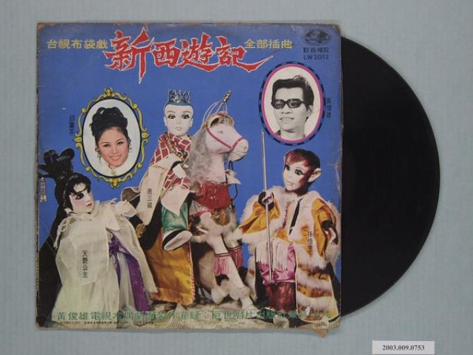 巨世唱片公司出品編號「LW-2012」臺語歌曲專輯《台視布袋戲新西遊記全部插曲》唱片封套