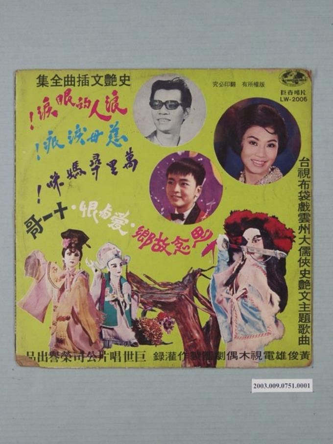 巨世唱片公司出品編號「LW-2006」臺語歌曲專輯《史艷文插曲全集》唱片封套