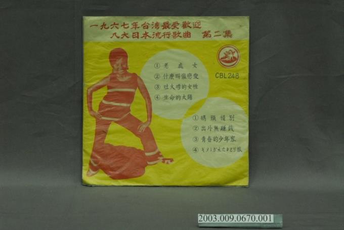 天使唱片公司出品編號「CBL-248」歌曲專輯《一九六七年臺灣最受歡迎歌曲 八大日本流行歌第二集》唱片封套
