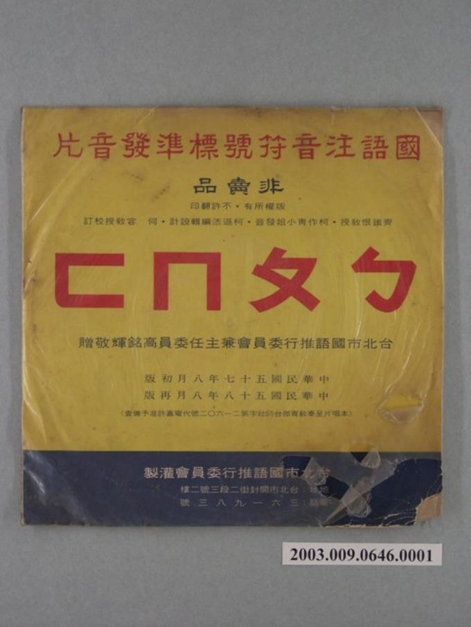 環球唱片公司發行華語教學唱片《國語注音符號標準發音片》第1片