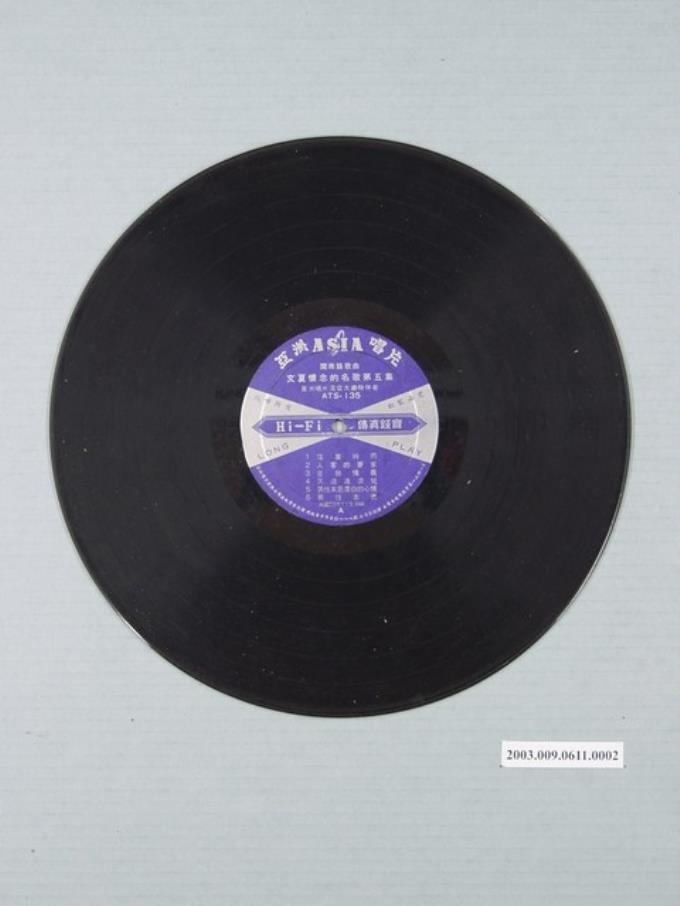 亞洲唱片公司出品臺語歌曲專輯《文夏懷念的名歌第5集:落葉時雨》12吋塑膠唱片