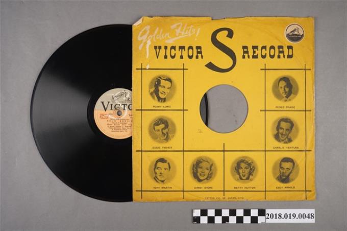 日本勝利唱片公司發行編號S-6010《勝利25週年爵士鼓布吉舞曲(克魯帕&埃爾德里奇)吉恩克魯帕三人爵士演奏:第一樂章 狐步、第二樂章 狐步》蟲膠唱片