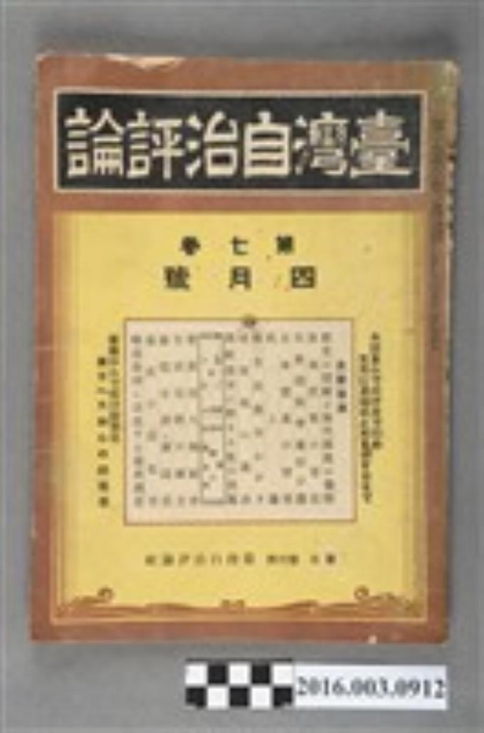 臺灣自治評論社出版《臺灣自治評論》第1卷第4號6月號
