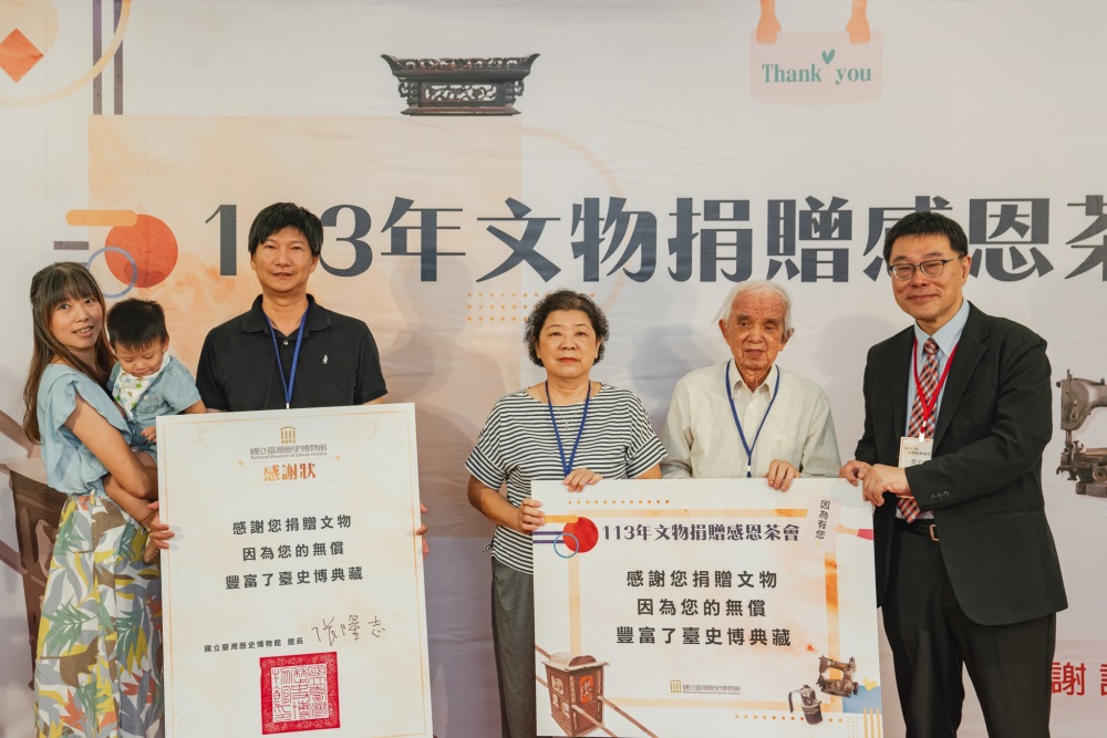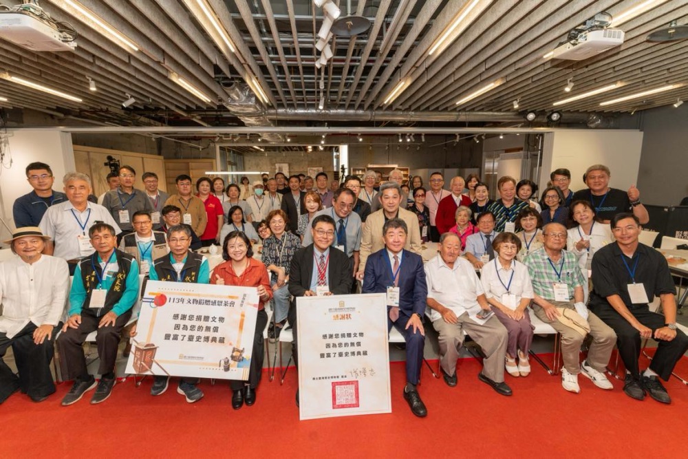 臺史博於颱風前夕10月30日 為感謝各界捐贈者舉辦文物捐贈感恩茶會,邀請近𝟯年的文物捐贈者回娘家。 這些捐贈的文物橫跨18世紀至當代, 包含清代地圖、祖先畫像、書籍、傢俱 等多元且豐富,數量多達𝟯,𝟱𝟬𝟮件! 感恩茶會閃亮亮亮點 ✓行政院政務委員陳時中捐贈「擔任國家衛生指揮中心指揮官的背心」,見證了臺灣防疫期間同島一命對抗新冠疫情的歲月。 ✓國寶級手繪電影看板畫師顏振發先生捐贈「防疫大作戰大型帆布畫作」,此畫作創作於2020年5月底,為歡迎衛福部疫情✓指揮中心防疫團隊推動防疫新生活政策而繪製,呈現臺灣COVID-19防疫初期的五位重要人物。 ✓侯美智女士及家屬捐贈 「18世紀末臺灣原漢界址圖」,為現今留存臺灣17、18世紀番界圖唯二之一(全臺僅有二卷,另一件為中研院民番界址圖),具體圖繪出臺灣番界管理政策,是清代輿圖重要的珍品。 ✓蘇雨柔女士捐贈「烏俄戰爭曾聖光戰士遺物」,可作為見證臺灣參與當代國際衝突的直接物證。 ✓潘照祺(那卯望.大宇)先生等捐贈「清代岸裡大社初代番通事潘敦畫像」,為清代中部平埔族與清帝國互動關係之經典歷史圖像,亦為罕見臺灣傳世清代祖先官服畫像年代較早之案例,其家族傳世脈絡有序。 ✓林忠志先生捐贈林茂生先生與其夫人王采蘩女士「日治時期公學校畢業證書等」,為日治時期重要臺籍知識份子林茂生與夫人遺留重要經歷證明。 ✓柳營代天院管理委員會捐贈「醮典簿」,為日本時代撰寫,詳實記錄柳營王醮之準備工作與科儀順序,為研究臺灣宗教民俗之珍貴文獻資料。 捐贈者及陪同者家屬等共59名,政務委員陳時中及顏振發先生也親臨現場,由張隆志館長代表館方,向所有捐贈者奉茶至上最深的感謝,並頒發感謝狀與典藏卡。 您的珍寶由我們守護 每件文物入藏都有其特殊緣分,感謝所有捐贈者的信任,將家中珍寶慷慨捐出,比起完善的保存,臺史博更重視維繫這段與捐贈者的關係,賦予這些文物更多的情感記憶,讓我們一同共筆有溫度的臺灣歷史,屬於臺灣人的故事由我們來守護,讓世界更認識臺灣文化。 按此處觀看感恩茶會精彩花絮