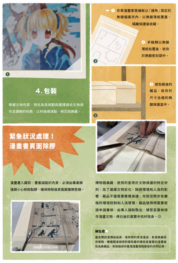 來源與出版資訊:陳怡君,〈漫畫文保與典藏實務經驗談〉,《Watch Taiwan 觀・臺灣》第63期(2024年10月) ,臺南:國立臺灣歷史博物館。